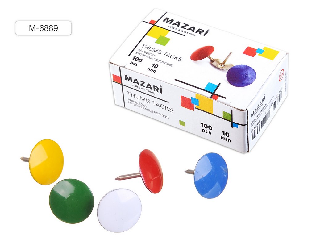 Кнопки канцелярские, 100 шт., металлические, цветные